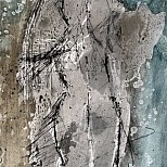 Niet gespannen, kan ingelijst worden of aan (houten) magneetstrip worden gehangen.