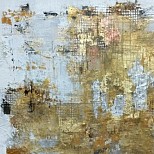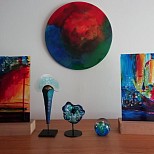 Abstract werk in epoxy gegoten waardoor er een glimmende laag over het werk schijnt