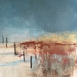 Acryl met mixed media. Werk met veel structuur en natuurlijke pigmenten.