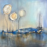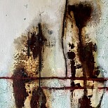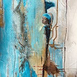 Digitale bewerking van eigen schilderwerk met op de print toevoeging van mixed media.