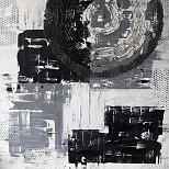 Silver spot is een abstract schilderij in de kleuren grijs, zwart en wit met