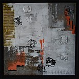 Met een donkere, zwarte achtergrond een verrassend schilderij met veel licht, rood en oranje. Als dit schilderij of goed belicht wordt, of op een lichte plaats hangt, dan is het een beauty !!