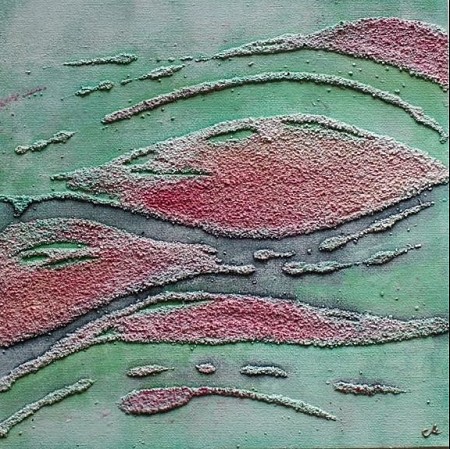 Een globale impressie van het schilderij "Coral Sedum" 25x25cm.