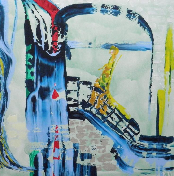 Een globale impressie van het schilderij "De blauwe poort" 100x100cm.