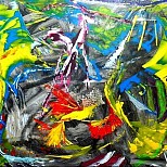 Een globale impressie van het schilderij "De dans" 100x100cm.