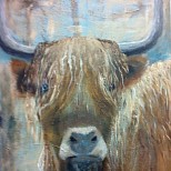 Een globale impressie van het schilderij "Jonge koe" 50x50cm.