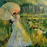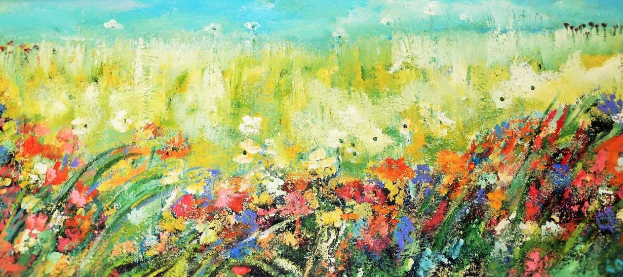 Een globale impressie van het schilderij "In de berm" 150x70cm.