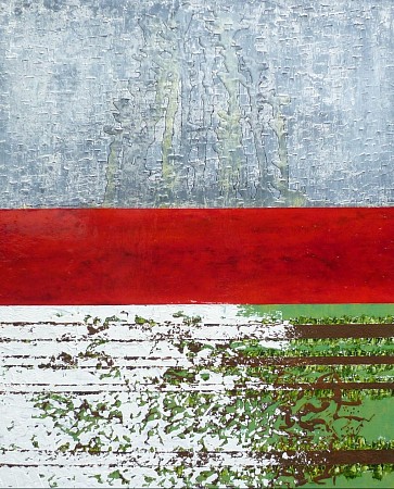Een globale impressie van het schilderij "Rode balk" 85x105cm.