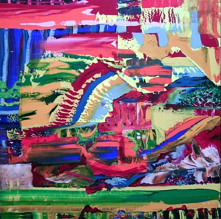 Een globale impressie van het schilderij "Tooi" 100x100cm.