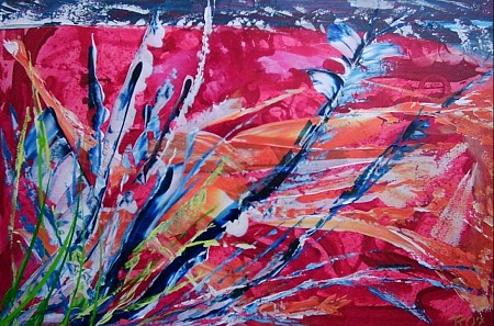 Een globale impressie van het schilderij "Oever" 120x80cm.