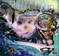 Een globale impressie van het schilderij "Moeder met kind" 90x90cm.