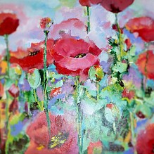 Een globale impressie van het schilderij "Klaprozen" 100x100cm.