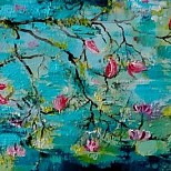Een globale impressie van het schilderij "Romantisch" 100x100cm.