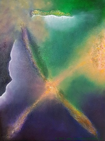 Flowpainting. Watermengbare olieverf met structuren. Veel diepte en lichteffecten