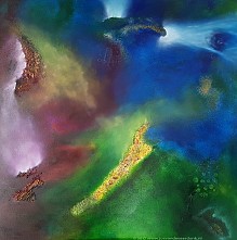 Een globale impressie van het schilderij "Connected" 100x100cm.