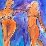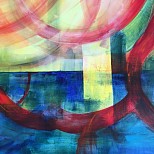 Een globale impressie van het schilderij "Reverie d 2017" 120x120cm.