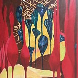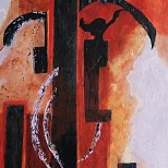 Een globale impressie van het schilderij "Geen titel" 40x100cm.