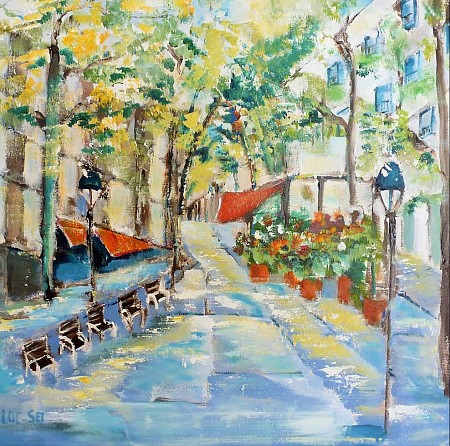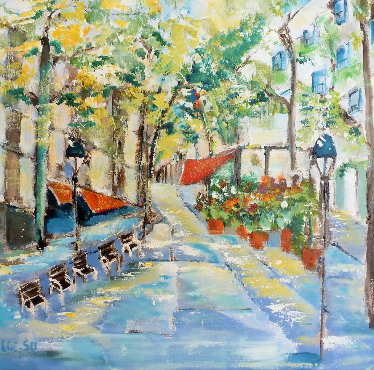 Een globale impressie van het schilderij "Barcelona" 50x50cm.