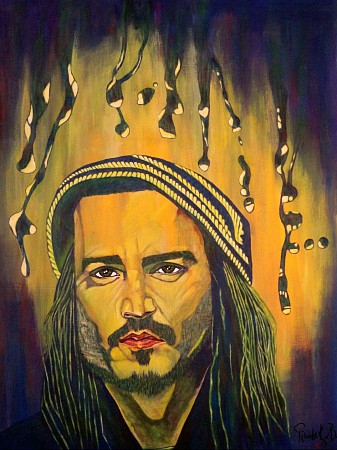 Een globale impressie van het schilderij "Johnny Depp" 60x80cm.