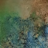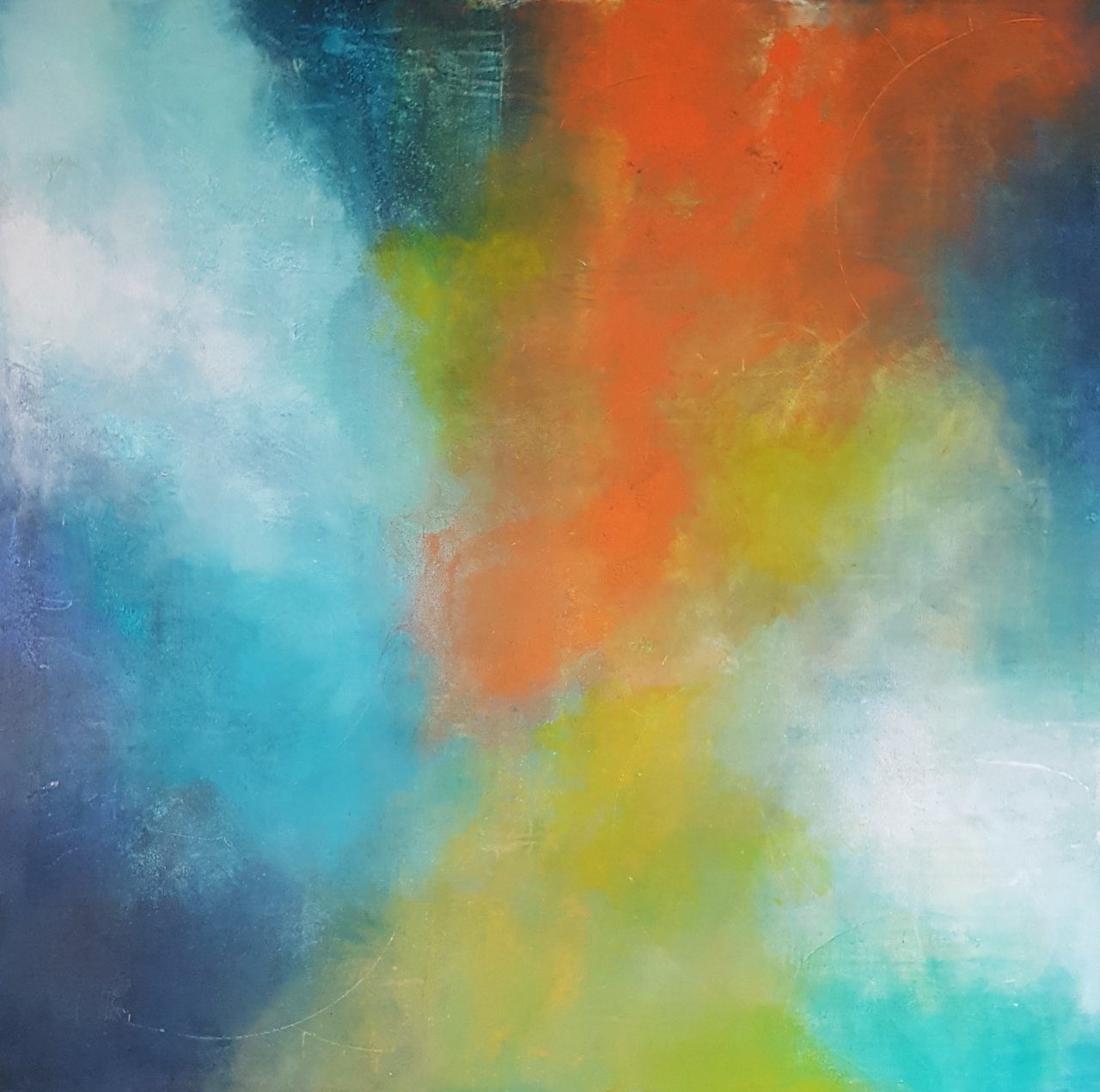 Een globale impressie van het schilderij "Clouds" 90x90cm.