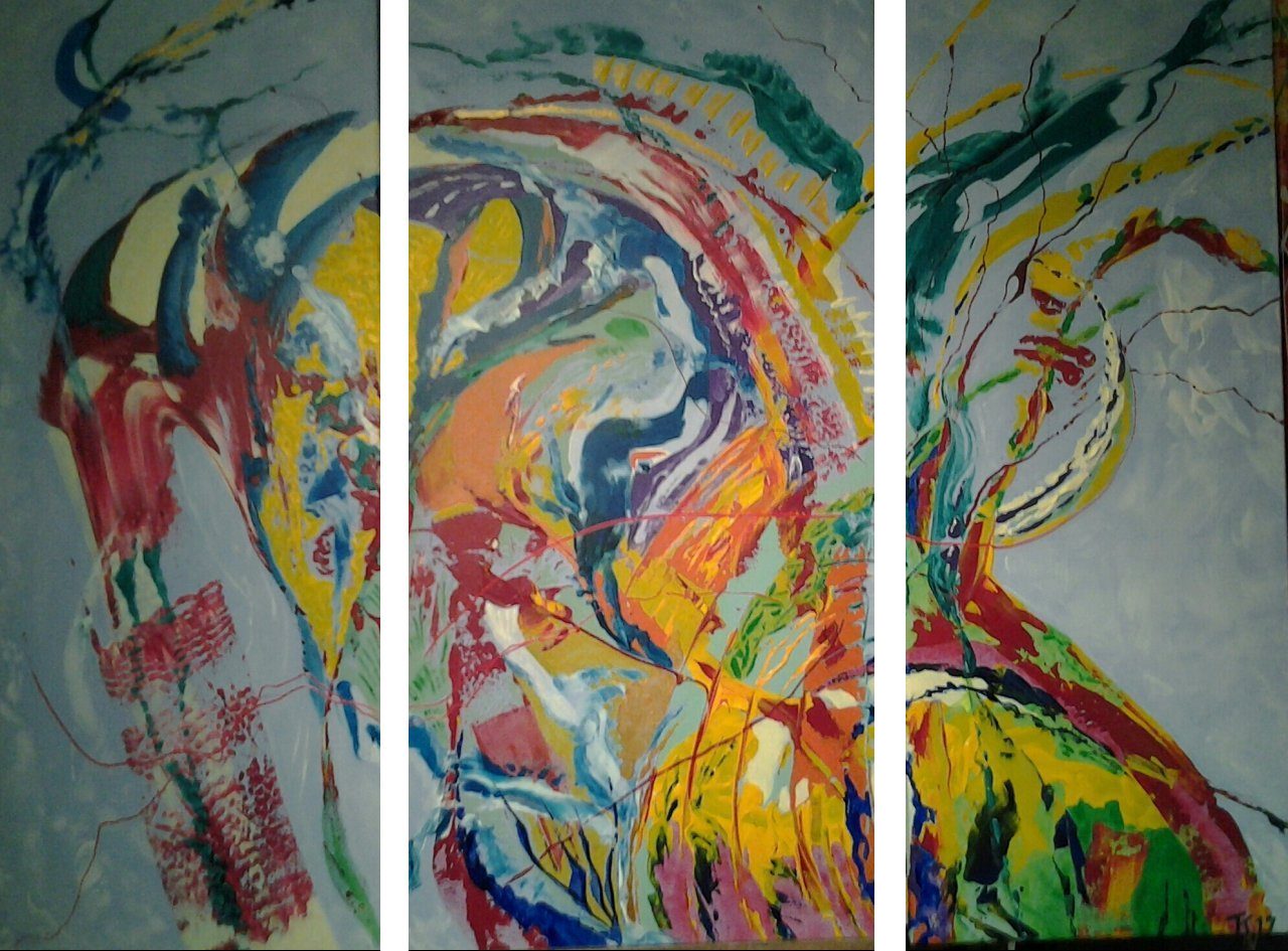 Een globale impressie van het schilderij "Gedachtenstroom" 140x100cm.