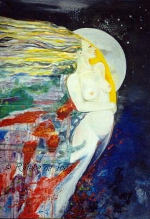 Een globale impressie van het schilderij "Rond de Nacht" 100x120cm.