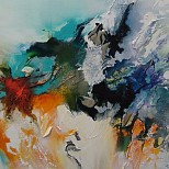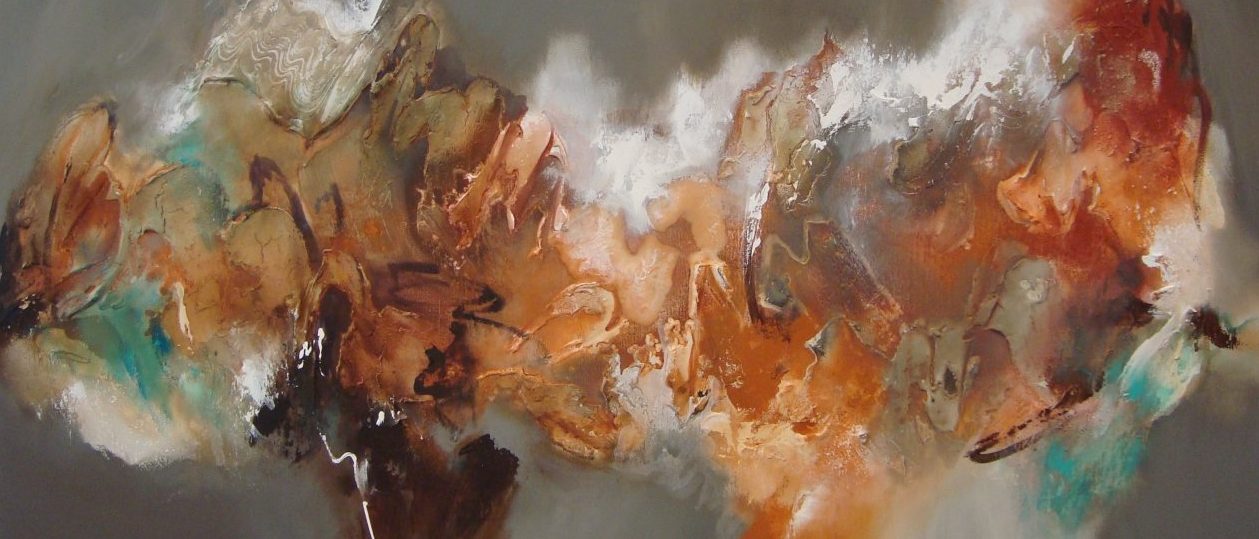 Een globale impressie van het schilderij "Dwarrelen als een vlinder 5" 160x80cm.