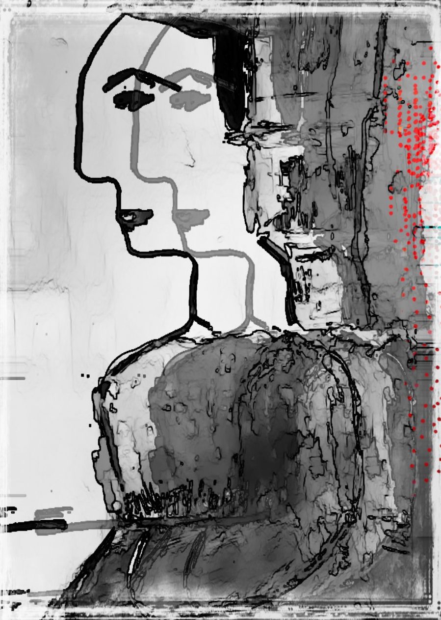 Een digitale bewerking van eigen geschilderd werk, afgedrukt op aluminium.