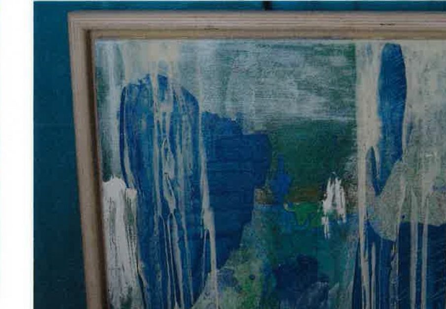 Een globale impressie van het schilderij "Untitled abstract - groen met blauw" 40x40cm.