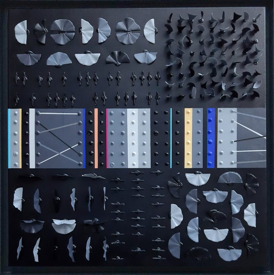 Acryl, wood flakes, hemp rope on linnen XL. Abstract, art, construtivism, geometric. Mixed media. 55x55x8cm. Prijs excl. lijst.