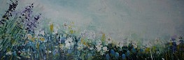 Een globale impressie van het schilderij "Bloemen in de berm" 120x40cm.
