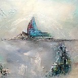 Een globale impressie van het schilderij "Blueart" 100x100cm.