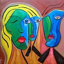 Een globale impressie van het schilderij "Two against one" 60x60cm.