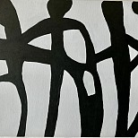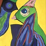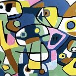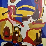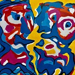 In de stijl van de Cobrabeweging uit de jaren 50. Oil op Canvas doek in houten frame.