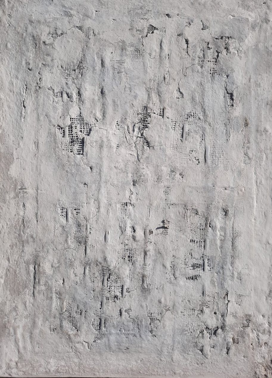 Een schilderij met texture en natuurlijke pigmenten.