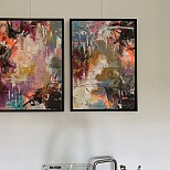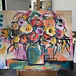 Mixed media .acryl op canvas 3D doek.incl. Zwartebaklijst. Afwerking mat vernis ,ophang systeem aanwezig