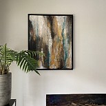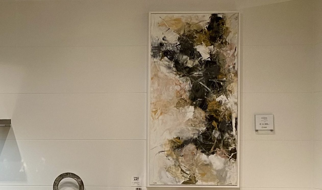 Een globale impressie van het schilderij "Gouden regen 2" 75x145cm.
