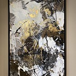 Mixed media op canvas 3D doek. Zijkant mee geschilderd. Afwerking mat vernis. Ophang systeem +ophang systeem