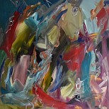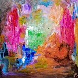 Een globale impressie van het schilderij "Tropic woods" 80x80cm.