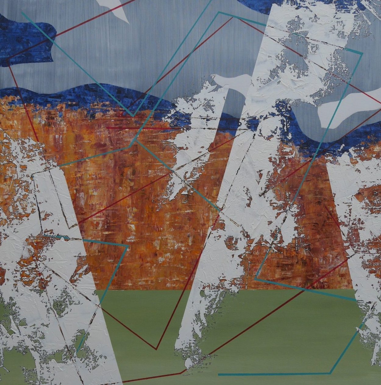 Abstract schilderij, uitgevoerd in Olieverf en Inkt op Linnen.