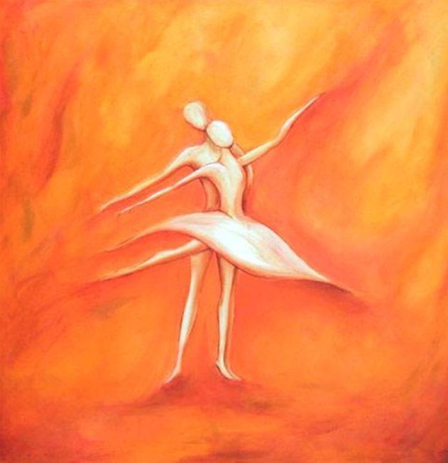 Een globale impressie van het schilderij "Royal dance" 70x70cm.