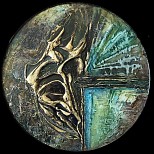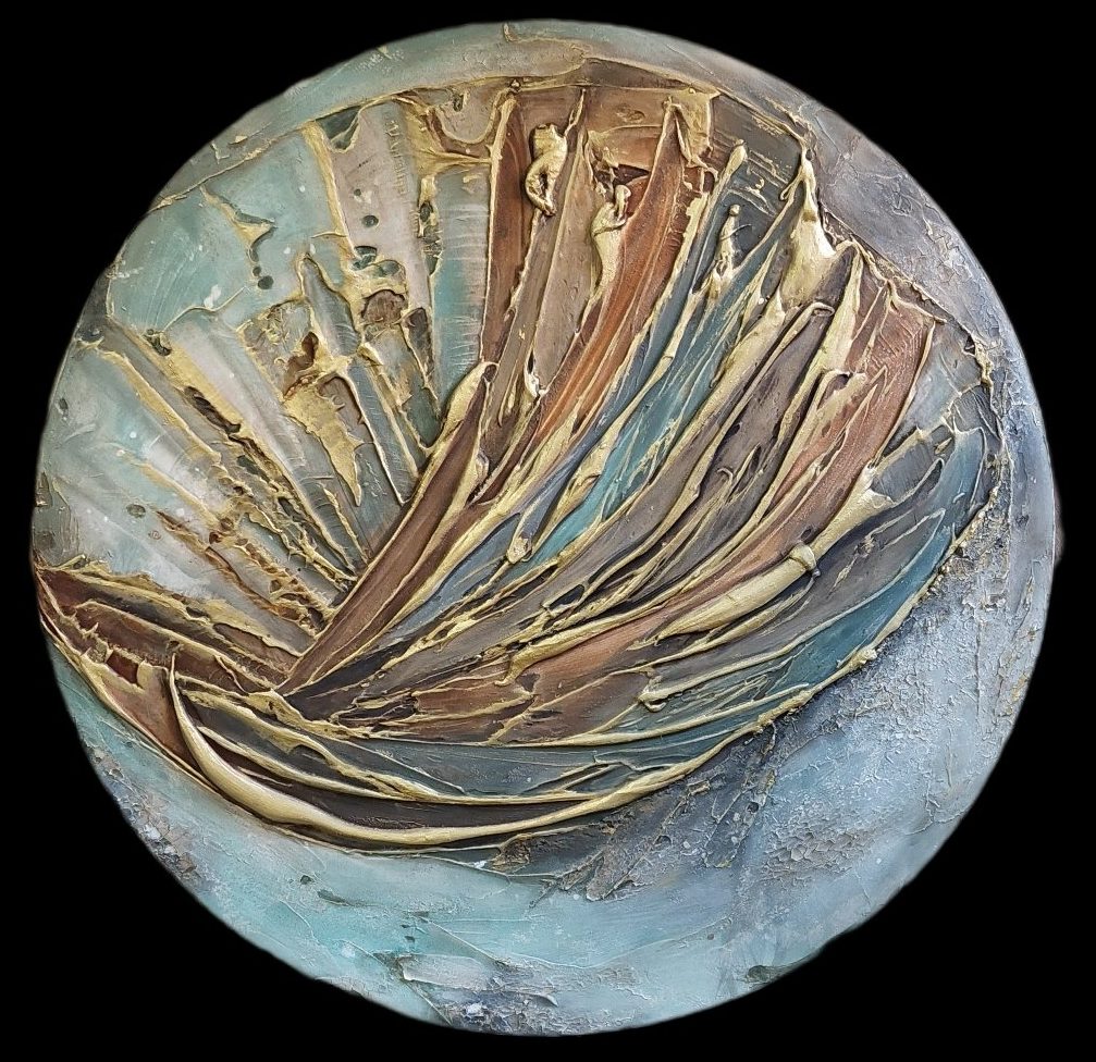 Met structuurpasta en acrylverf en goud pigmentpoeder