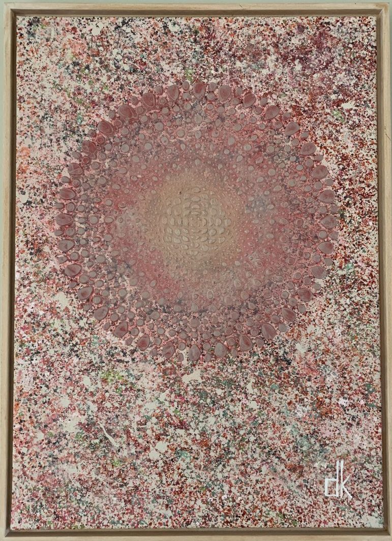 Een globale impressie van het schilderij "Flower dots" 50x70cm.