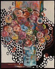 Black,White and Flowers acryl op canvas doek, afgewerkt mat vernis .Incl. ophangsysteem . Met zwarte baklijst. Formaat 85x105 cm.
