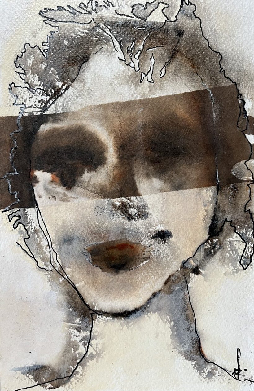 Een globale impressie van het schilderij "Faces 3" 17,5x26,8cm.