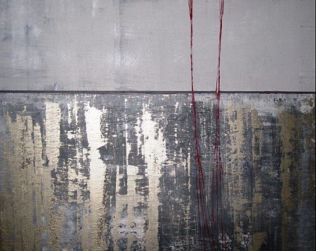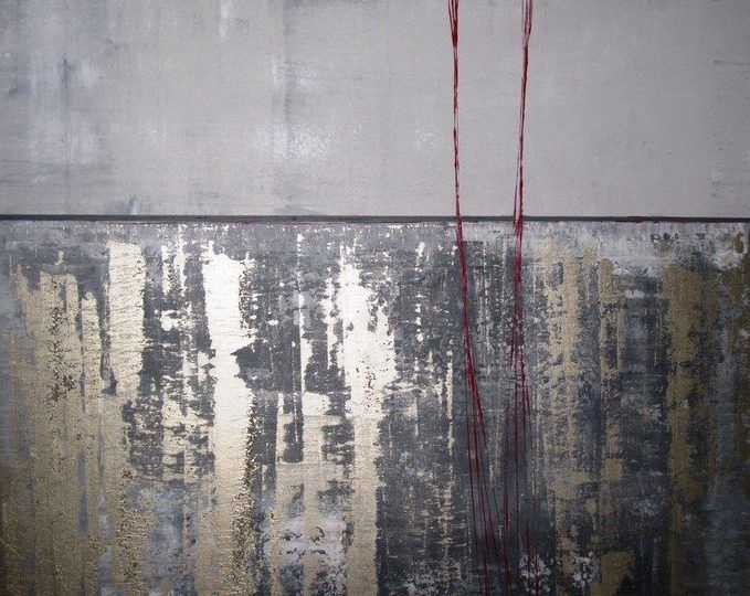 Een globale impressie van het schilderij "Whiteout" 100x100cm.