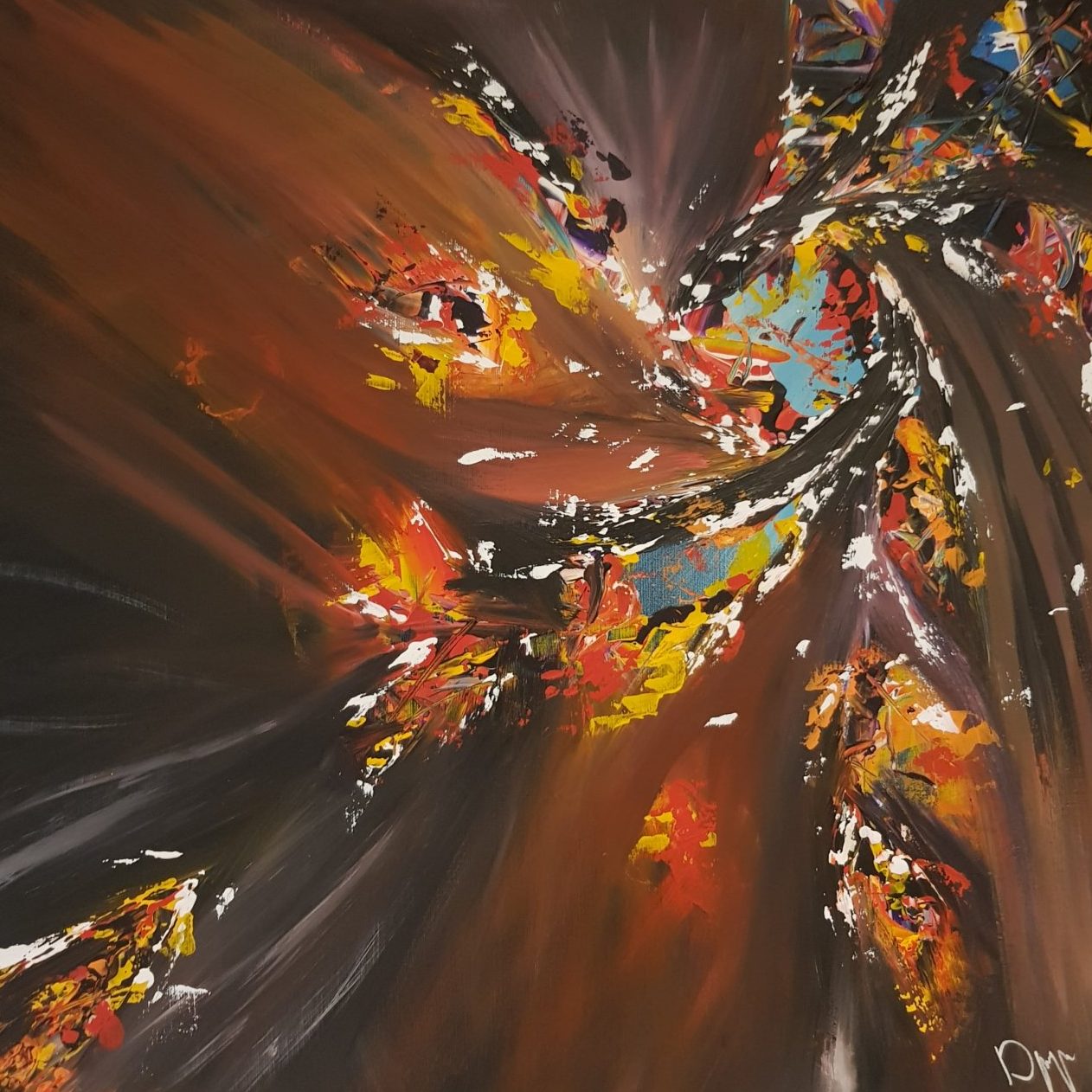 Een globale impressie van het schilderij "Vibrant Void" 70x70cm.