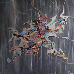 Een globale impressie van het schilderij "Alloy Dragon" 70x70cm.
