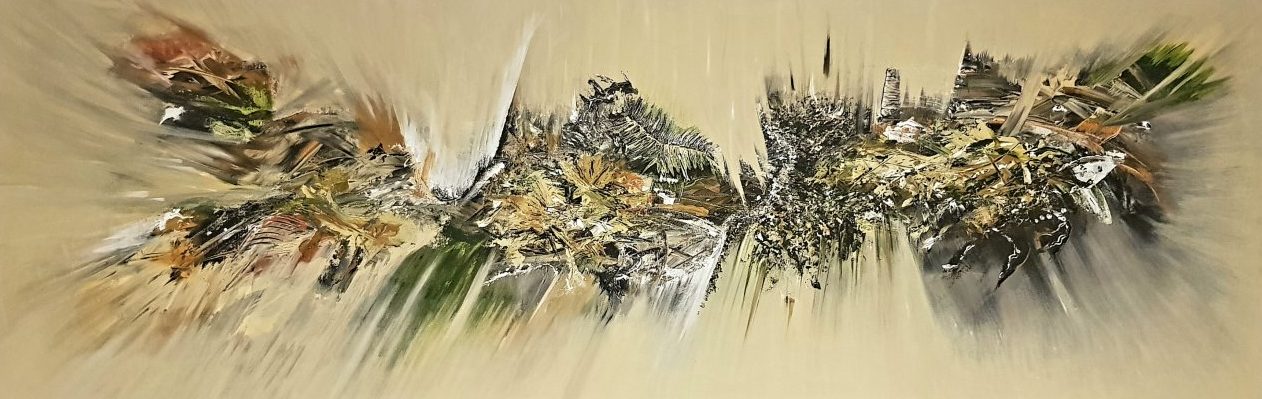 Een globale impressie van het schilderij "Sunlit Foliage" 150x50cm.