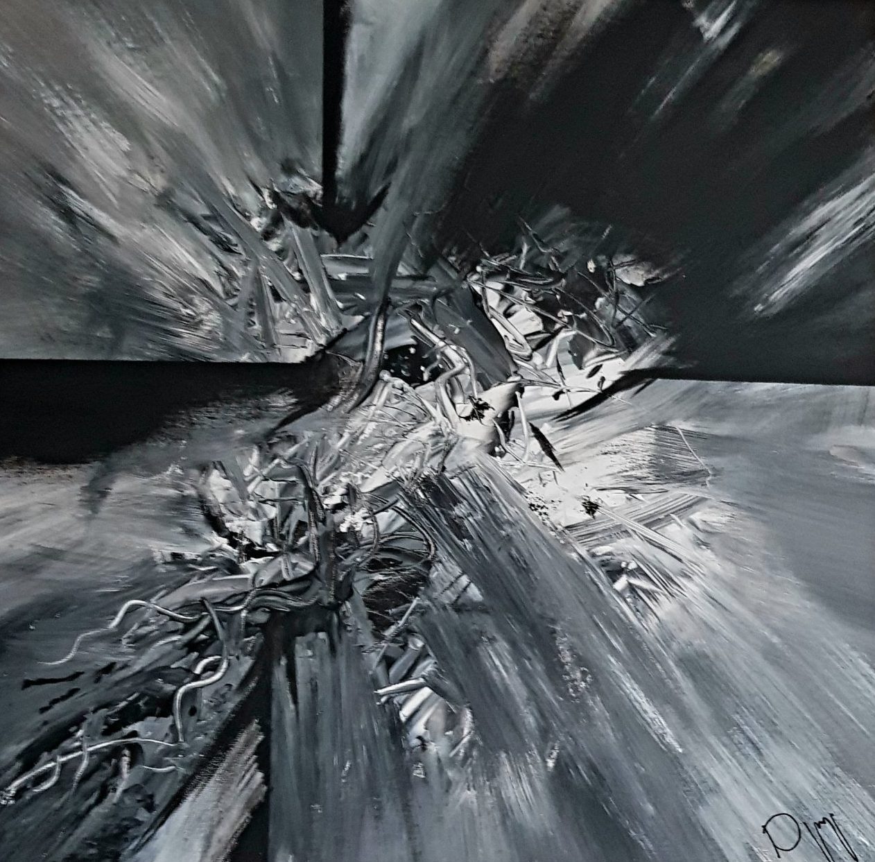 Een globale impressie van het schilderij "Black and White" 50x50cm.